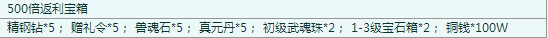 该道具投放至10级等级礼包内(花费1元宝开启,即可获得丰富的道具奖励)
