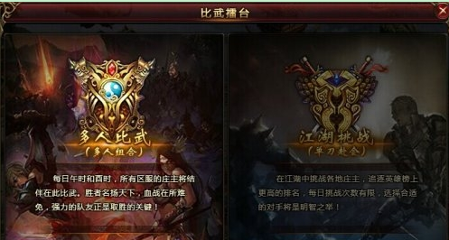 侠士进入山庄,点击“比武擂台”,进入多人比武,可邀请其他侠士一起参与比武。