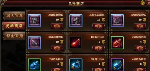 战斗胜利后,玩家将获得大量的声望和英雄令牌作为奖励。英雄令牌积攒到一定数量后可在“竞技商店”兑换各职业的紫色装备图纸及寒铁石、绝版药水等道具。