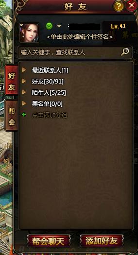 作为一款纯正的武侠页游,社交系统起着支撑江湖侠士们构建交流平台的作用。在《天龙》中,社交系统主要由好友界面和聊天界面组成。