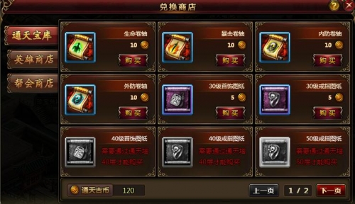 “通天古币”,山庄“珍宝兑换”内“兑换商店”的【通天宝库】中所流通的货币,进入通天塔后,每通过5层会出现一个金宝箱,宝箱内随机赠送不等数量的“通天古币”、宝石以及其他稀有道具。这些“古币”用于在【通天宝库】兑换多种稀有道具和装备套装。通天古币“需要通过挑战”通天塔“获得。